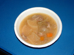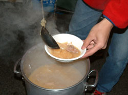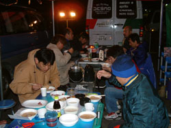 私達のテントでも、本日のメイン料理、ポトフが振舞われ始めました。 | ![]() |