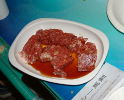 馬刺しです。いっしょに送られてきたタレをかけて食べます。これが!! | ![]() |