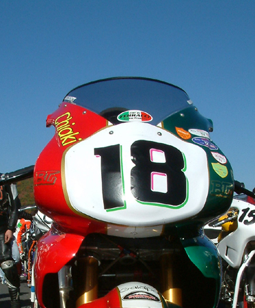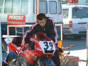 向かいのテントはOVERさんでした。そこでウォームアップをしているこの方、 皆さんお分かりになりますでしょうか? 例の番組で有名になったあの人です。 |