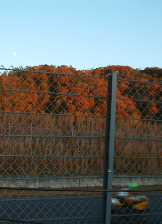 最後に、前月に続いて秋らしい景色その2です。 今回はサーキットの周りの紅葉がかなり進んでいて、とても綺麗でした。 気温はもうすっかり冬のようでしたけど。 |