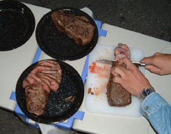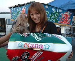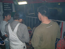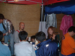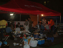 隣のテントでは炭火での焼肉が始まりました。以前にもご一緒しました、 よねっちさん、さんこいさんのグループです。こんな風に、 それぞれの楽しみが夜のパドックでは行われています。 |