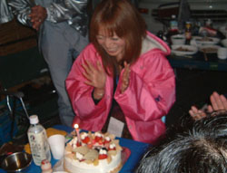 ローソクを消します。このローソク、音楽が仕込んであるんですねー。 で、火を消すと音が止まるんです。よくできてますねー。 Nanaさんは、記念にお持ち帰りされました! | ![]() |