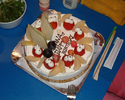 これが、そのバースデーケーキです。今日のために、作ってもらったものだそうです。 これがまた、ホントにおいしかったです! |