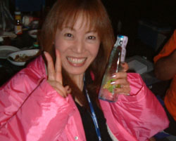 全て出来上がったところで、前夜祭が始まりました、なんとなく。 乾杯して、あとは各自適当に飲み食い歓談です。Nanaさんも、ゴキゲンのようです。 | ![]() |