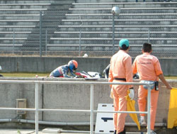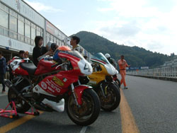 ピットロードに、入賞したマシンが並べられます。誇らしげに、先頭に並んでいます。 |