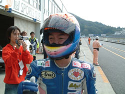 フィニッシュ直後のMAKOTOさんです。ヘルメットの中で、満面の笑みです! | ![]() |