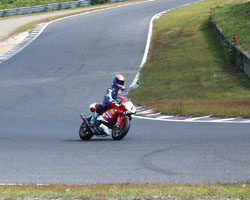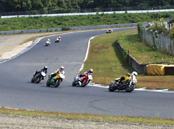 1周目の、いつものコーナーです。この時点で、2番手です! しかしこの次のコーナーで後ろのマシンとブレーキングで接触、 コースアウト寸前で3位で復帰しています。 | ![]() |