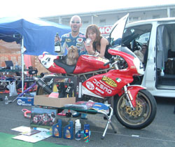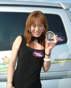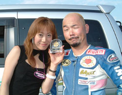 マシンの前に、優勝の賞品を並べての記念撮影です。後光が射してます! | ![]() |
