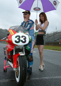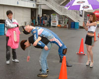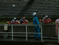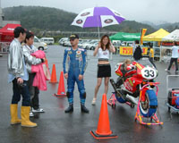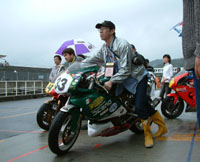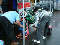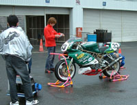 レースの準備が始まりました。タイヤウォーマーを巻きます。 | ![]() |