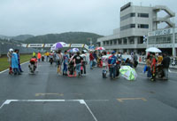 コースインです。空が明るいですね。雨は、限りなく小雨になっています。 | ![]() |