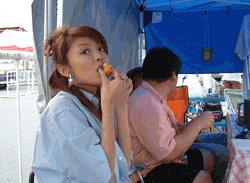 カメラマンさんに取材されるChiakiさんです。ちゃんと大将が監督してる??? |