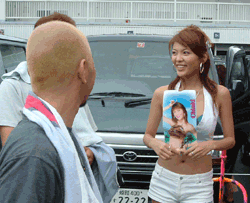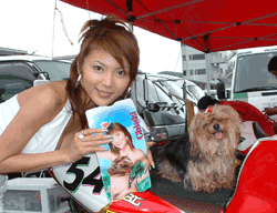 Chiaki仕様のタンクカバーと一緒に記念撮影です。 前回のNana仕様、このChiaki仕様と、レースクィーンに合わせてタンクカバーも着替えます。 |