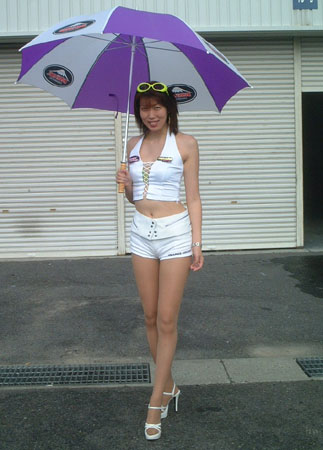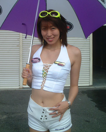 | まずは爽やかなショットから。パドックのEMIKOさんです。今日のお衣装は如何でしょうか? 近くで拝見しますと、これが結構セクシーです。 | |