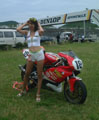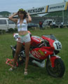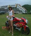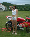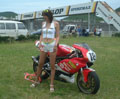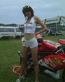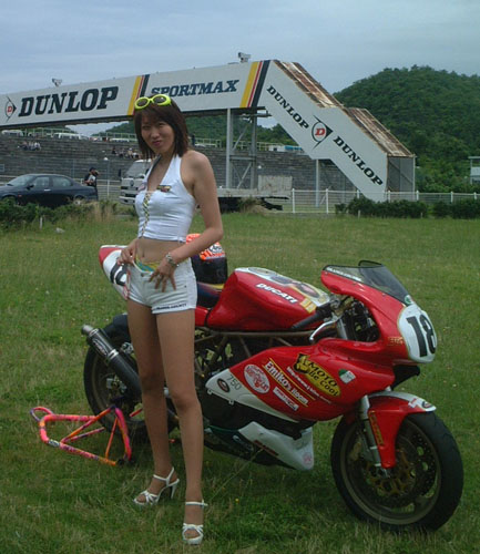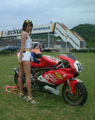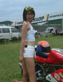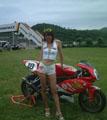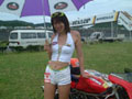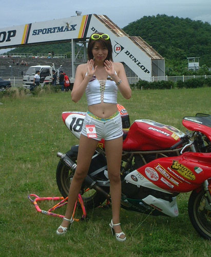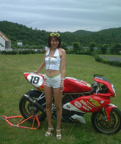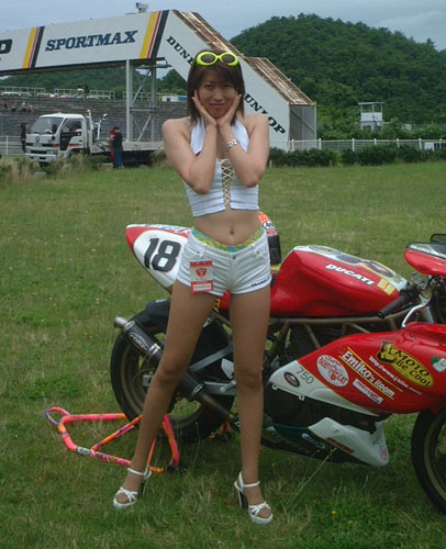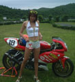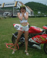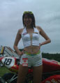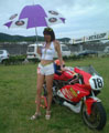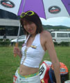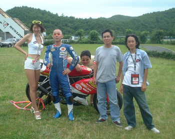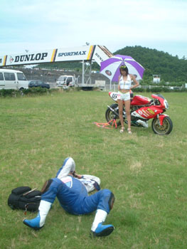 そしておやくそく、MAKOTOさんの撮影風景です。 この服装を御覧になってお分かりになりますように、この直後にレースを控えています。 今日も、コンセントレーションは充分のようです!