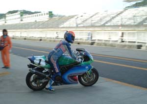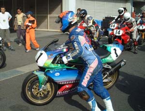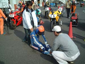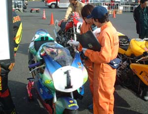 MAKOTOさんのマシンのスタート前チェックです。 何やら、指導しながらのチェックでした。