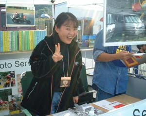 みくろさんです。今日は、写真屋さんのお手伝いに出動してこられました。 サーキットを走るアマチュアライダーの写真を撮影し、販売しています。 拡大のサービス等も行っているようです。 |