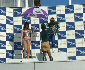 定位置になりつつある、表彰台の一番高いところです。 今日もEMIKOさん同伴です。この後、恒例の???があったかどうかは、、、 |