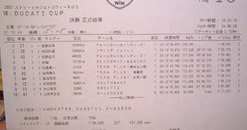 正式リザルトです。クラス1位、総合4位でした。表彰台まで、あとわずか!