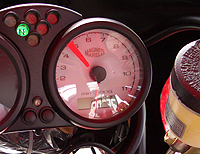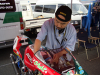 予選に向けて暖気していると、トラブルです! タコメータの針が動きません。(左上のオレンジは、マーカーです。) 「このまま行く」とのことです。 果たしてどうなることか、いよいよ、予選です! |