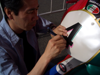 MAKOTOさん自ら作業されているのは、本日仕様の新しいタンクカバーです。 | ![]() |