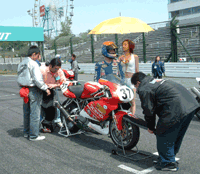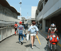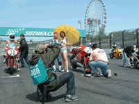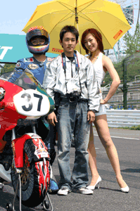 と、その間にピットレーンでは、すかさずミニ撮影会です。この人、これからレースなんですが。。。 | ![]() |