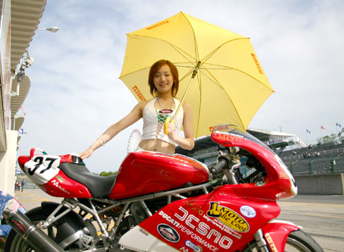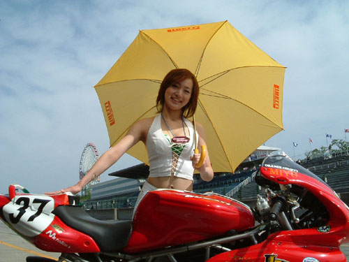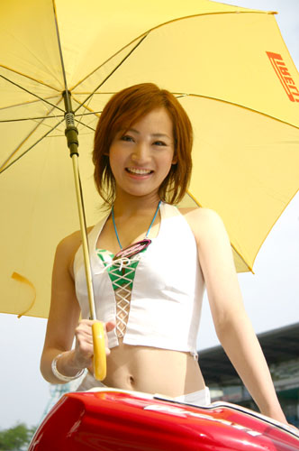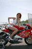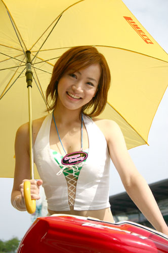 MIYUさん撮影会です。 いつもの芝生のような場所が無く、ピット裏の一角での撮影でした。