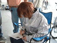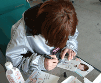 お仕事中のMIYUさんです。色紙に写真つきでサインをして下さっています。 | ![]() |