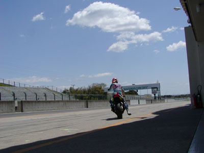 ピットに整然と並べられたお高そうなマシンたちです。こういうイベントならでは、の光景です。 | ![]() |