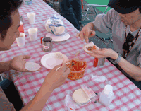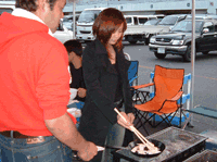 御紹介が遅れましたが、今回のオレンジカウンティレースクィーンのAYAKOさんも、 キムチ餃子焼きのお手伝いです。 | ![]() |