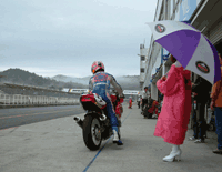 AYAKOさんに見守られつつ、ピットを離れます。予選開始です! | ![]() |