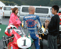 予選が終了しました。コース脇での応援からパドックへ戻るAYAKOさんとKyoちゃんです。 |