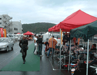 そのパドック村を御紹介します。今回、一番最終コーナー寄りは、私達オレンジカウンティです。 ええと、いつものように、特に何も販売しておりません。。。 |