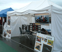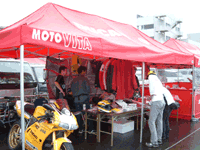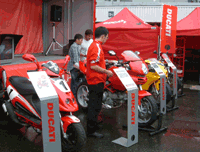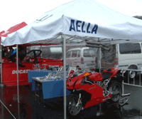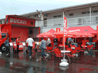 そのピット寄りのスペースに、出来上がりました、ドカティのブースです。 | ![]() |
