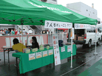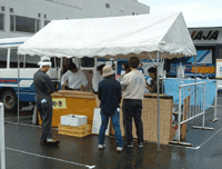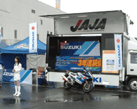 食べ物屋さんの裏、タワー横にはJAJAのブースです。GSX-R1000が展示されています。 今回は天候のせいか出店されないところも多く、ちょっと寂しかったですねー。 |
