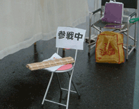 すっかりお馴染みになった、ギムネマ茶コーナーです。観戦に入っちゃってます。 |