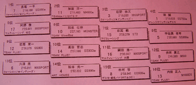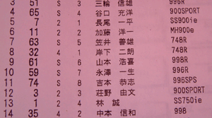 総合13位、クラス4位です。 表示の数字は左から、総合順位、ゼッケン、クラス識別、クラス順位です。