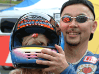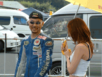 スタート前に談笑中のMAKOTOさんとAYAKOさんです。 一見、カメラ目線のようですが、サングラスの下の瞳が、 実は私の方なんか全然見ていないことは、よくわかっています。。。 | ![]() |