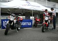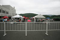 いつもはパドックの真中を横切るテント村も、今回はパドックを外れて、 コントロールタワー前に設けられています。顔ぶれも、いつもよりちょっと寂しいですねー。 | ![]() |