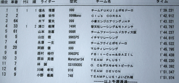 予選結果が出ました。アナウンス通り、11番です。 でもこのタイム、前回と同じクラスならクラストップです。ううん、さすが、アドバンスクラス! |