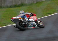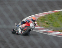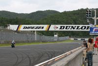 いつもと違ったアングルを撮ってみました。ここは1コーナーのブレーキングです。 |