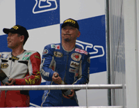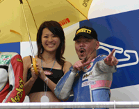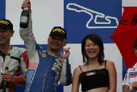 表彰台での表情です。HARUNAさんは、なんと2戦連続でのお立ち台です。 強力なラッキーガールですね! | ![]() |