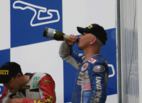 最後に満面の笑みでガッツポーズです! レース中のベストラップは47秒180、もちろん自己ベストです。さすが!! |