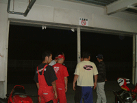 暗くなったピット出口で集まって何やらあーだこーだとやっています。 何が起こったかと言うと、、、(→) | ![]() |