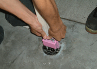 これです、シャッターの支柱。 ピットロードが傾斜しているために支柱の長さがそれぞれ異なり、 一致する柱と穴が同色に塗り分けられている(ハズ)のですが、 どうやっても入らず、結局はピンクの柱を黒の穴に入れてピッタリでした。 何故か、色が違っていたようです。 |