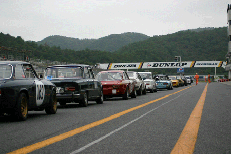 ずらっとコースインを待つ、ちょっとクラシックなアルファロメオたちです。