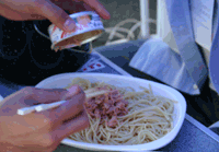 早い昼食(遅い朝食?)の準備が始まりました。今日はスパゲティです。 |