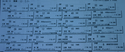 予選正式結果が出ました。タイムは55秒3、総合22位ですが、クラス3位です! (青い紙じゃないんですが、ホワイトバランスが、、、) |