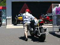 スタート前チェックの間、タイヤにウォーマーを巻きます。 | ![]() |