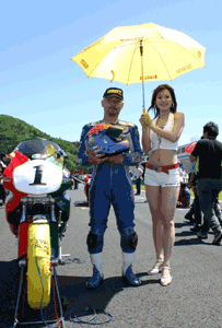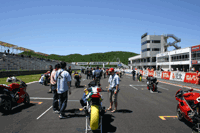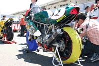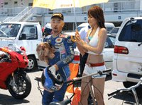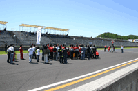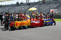 今日は、グリッドの前に出走ライダー全員で記念撮影を行いました。こんなこと、初めてですねー。 | ![]() |