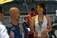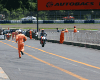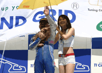 ピットロード入り口で止められていた車群の中から、 MAKOTOさんが最初に滑り出て来ました。ってことは?! |